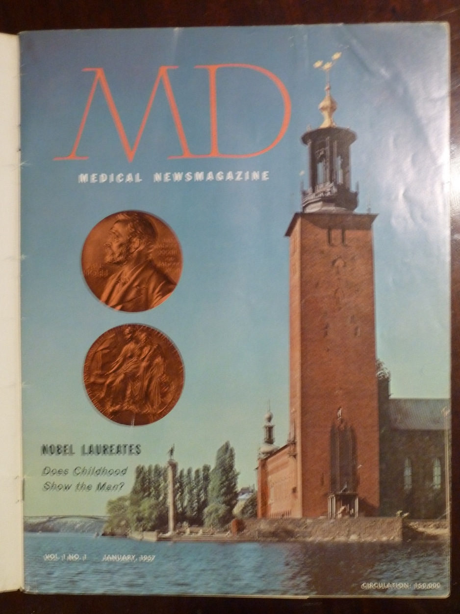 | MD, The Medical Newsmagazine is a complete replica of MD’s first issue, including editorial material. The advertisements have been replaced with current pharmaceutical products which meet present FDA regulations as of January 1967. | |